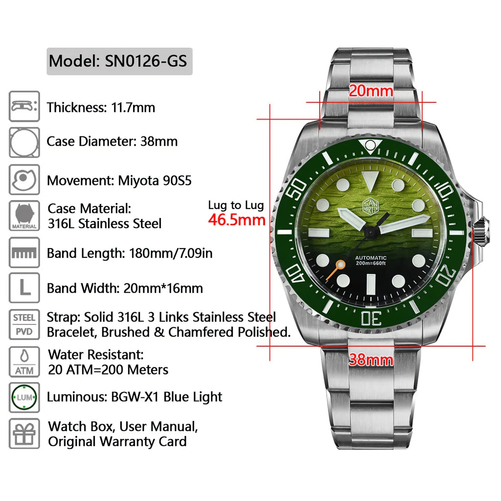 Dial Color: Enamel 3D Wave Texture Dial, Gradient Green-Black / Gradient Light Blue-Blue / Gradient Blue-Black / Black